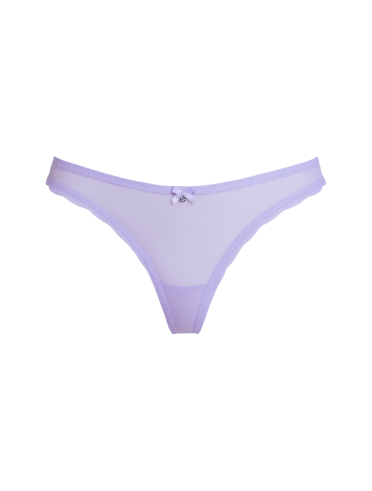 Soft, sweet, and effortlessly flirty — the Lilac Charm Thong is designed to keep things light and pretty. Crafted in delicate lilac mesh with a dainty bow and sparkling gem detail, this thong blends everyday comfort with just the right touch of charm. A must-have for your lingerie drawer when you want feminine vibes that still feel simple and wearable.