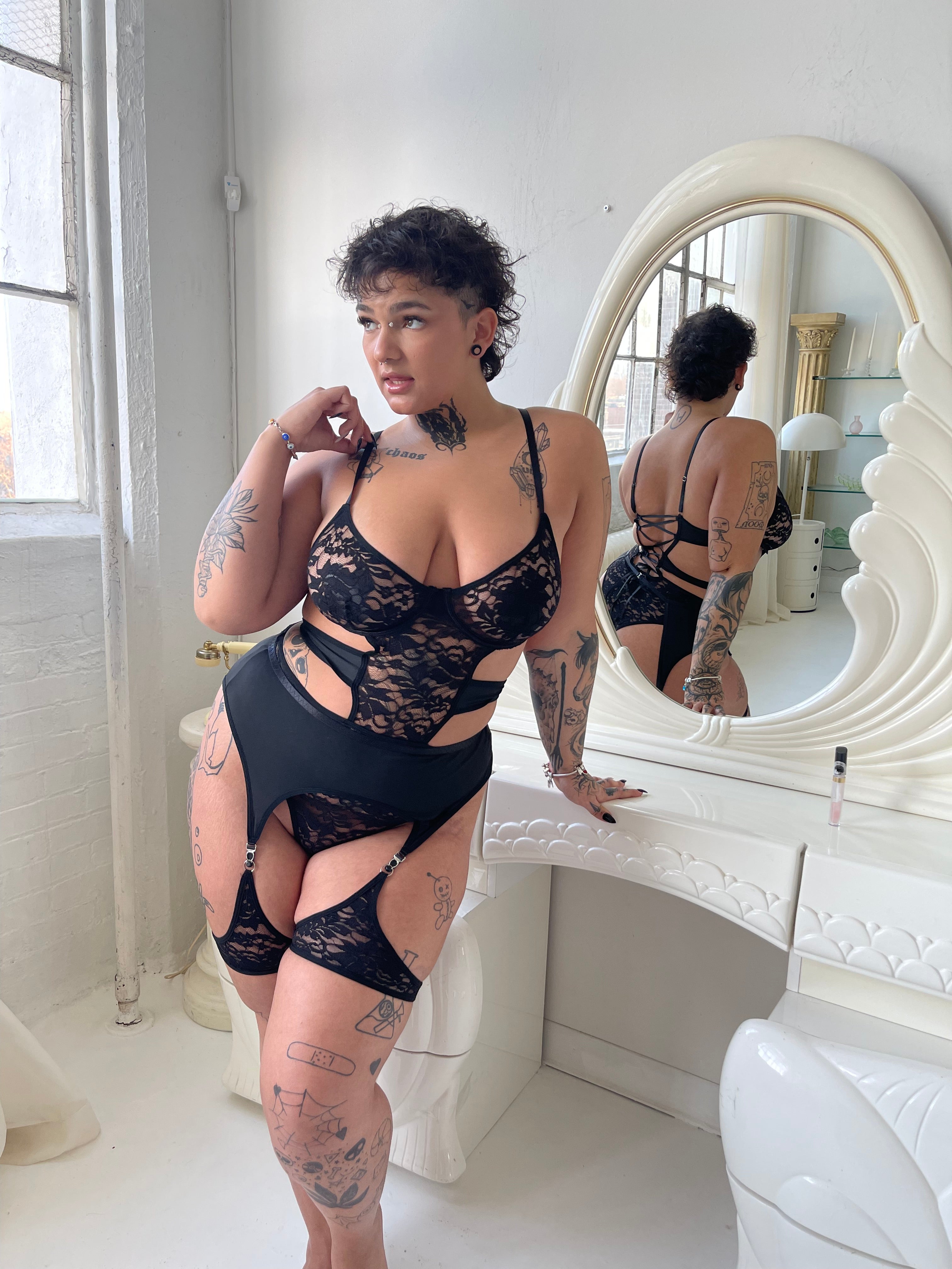 Whether petite, tall, curvy or somewhere in between, this bodysuit is all about celebrating YOU. The lace and stretchy panels are all about hugging your curves!