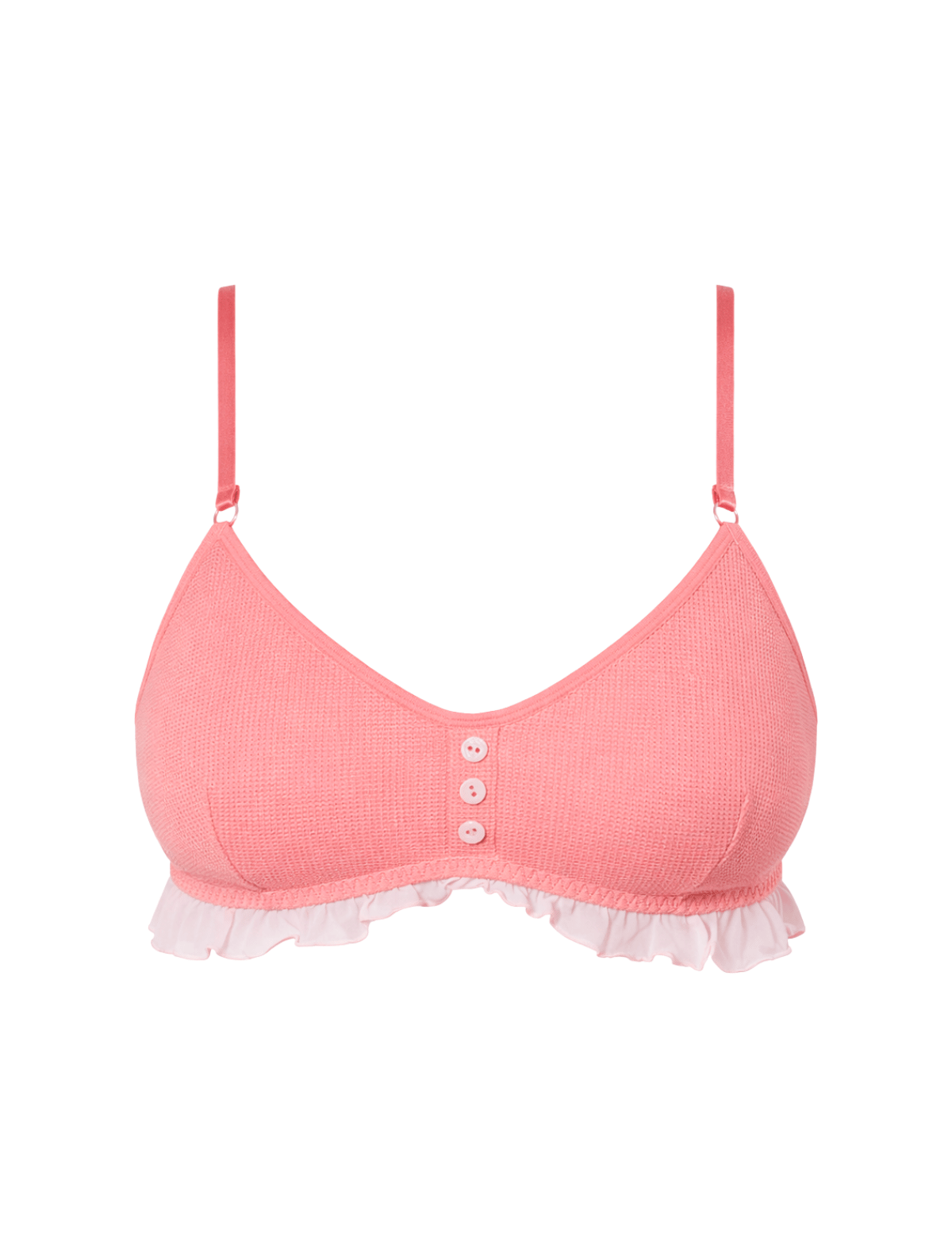 The Pink Compression Waffle Bralette includes soft, modal-lined waffle fabric Bralette with frill details to make you feel the cutest on your cycle.