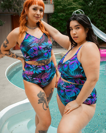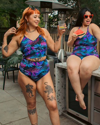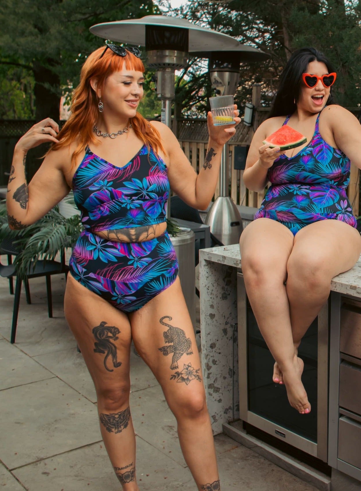 Compression for a sleek look - our high-rise bottoms ensure you step out with confidence, flaunting your curves with every splash and strut.