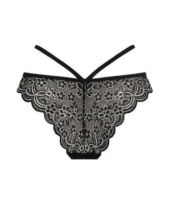 Strappy Metallic Lace Cheeky – A daring cheeky panty with shimmering metallic lace, scalloped edges, and bold strappy details. Sexy, comfortable, and perfect for nights out or lingerie lovers who want standout style. 100% cotton liner.